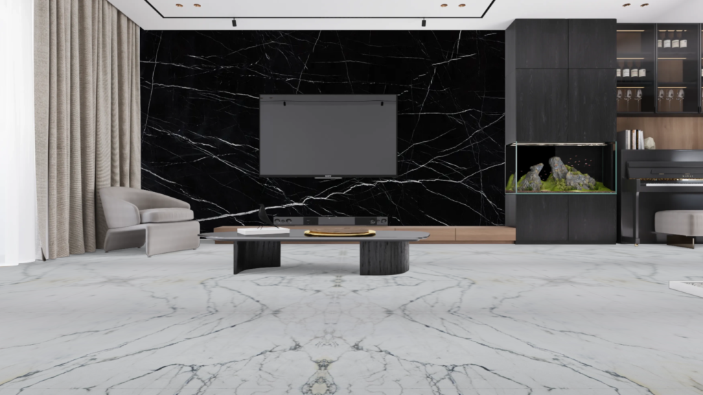 The same marble that build the Taj Mahal remains Indiaās most prestigious choice. Its pure white surface with subtle grey veining creates spaces that feel expansive and serene.